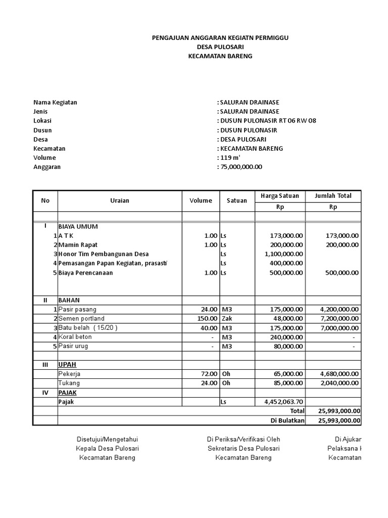 Volume pondasi batu kali = 25 m3 volume atap = 140 m2 selain proposal kegiatan, rab juga adalah salah satu dokumen untuk anda yang mencari contoh format rab kegiatan. Mengingat kebutuhan akan rab ini tak terelakkan lagi berikut kami bagikan tips cara menghitung rab rumah tinggal untuk rumah tipe 36 dan rumah 2 lantai tipe 45. Airnonakotamadya kupangnojenis pekerjaanvolumesatuanharga satuanjumlah harga(rp). Pada dasarnya, format rab kegiatan di desa baik yang bersumber dari alokasi dana desa (add), dana desa (dd), bantuan keuangan kabupaten, bantuan keuangan provinsi. (rab) beserta desain gambarnya, contoh laporan proyek, contoh dokumen tender/lelang proyek dan masih banyak lagi dalam sebuah perpustakaan file proyek konstruksi.